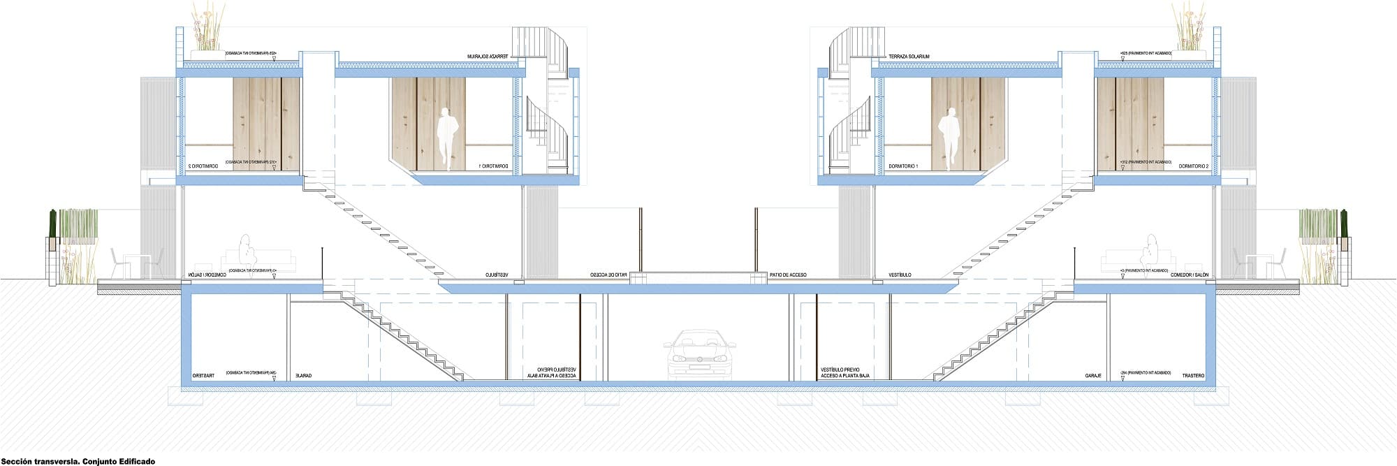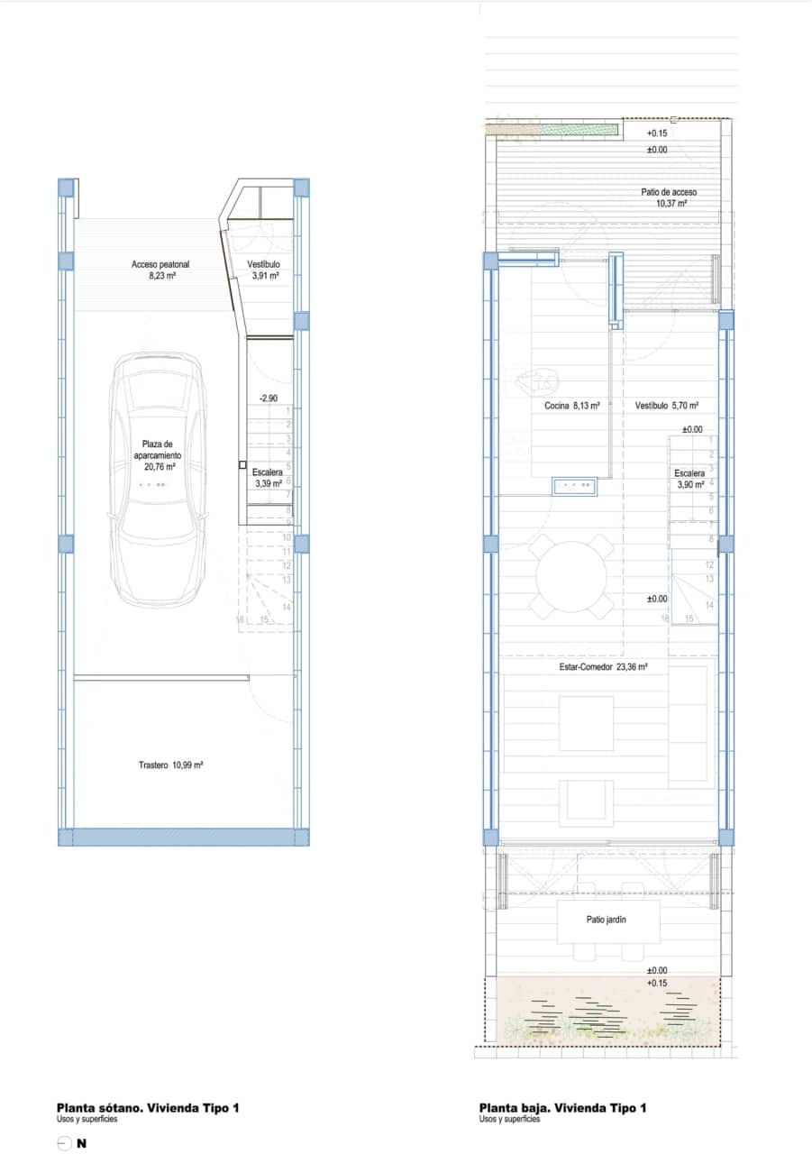 Its development focuses on the design of housing typologies where spatial fluidity, the contemplation and enjoyment of private outdoor patios, hygrothermal comfort through solar protection in summer and solar gain in winter, as well as cross ventilation. Special attention is paid to privacy with respect to the communal spaces, which are designed in an attractive way, taking care of the sensation of arrival at entrances and through the use of light, warm materials and vegetation. An attractive residential atmosphere with a Mediterranean and contemporary character is achieved.